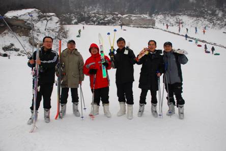 精心组织了一次特别的“新年活动”———沣峪滑雪。来自各教研室的近40名教师以饱满的热情参加了为时一天的滑雪活动。大家兴致勃勃地来到了位于环山路沣峪口的滑雪场,在导游的安排下,大家穿好滑雪装备依次进入雪场,开始练习滑雪。初学者及仅有一点点经验的老师都体会了一把雪地“摔跤”的滋味,但大家也从中充分领略了滑雪运动的乐趣。在一片欢乐与疲惫中,大家结束了一天的体育锻炼。