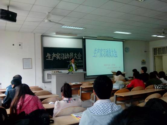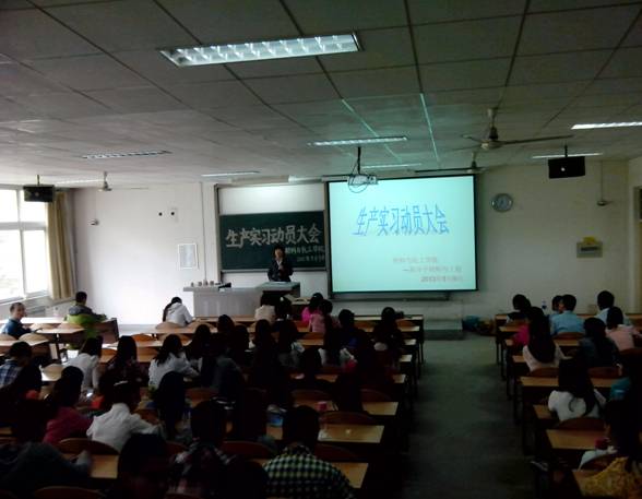党委书记张忠出席大会,参加生产实习的全体学生及相关老师参加了动员大会。