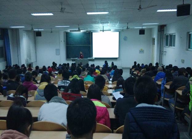 张老师以“班干部应具有的素质”为主题,向干部们具体讲解了作为班干部所必须具备的一系列素质和能力。张老师他提出学生干部应首先要有“思想政治素质与道德素质”,班干部应带领同学去传播正能量,使整个班级更加积极向上。当然“知识素质”是必不可少的。其次,张老师强调了班干部的“能力素质”——良好的“学习能力”、精湛的“工作能力”、超强的“分析能力”以及能够统筹规划的“行动能力”。