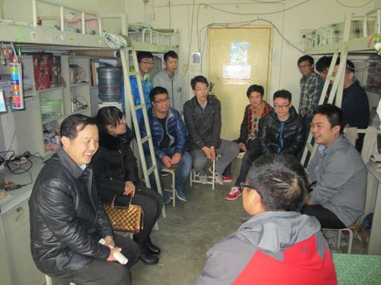 院长李建平教授进入四公寓603、610、611男生宿舍,就学生的学习生活进行深入地交流。