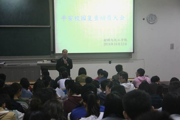 张副书记首先介绍了“平安校园”复查工作的背景及意义,并普及了本次复查工作宣传口号。然后,张老师指出,平安校园是促进学生全面发展的前提,要求所有辅导员加强教育管理,落实自身职责。大学生与社会接触不多,心智不够成熟,缺乏自我保护能力。号召大家一方面要坚持“安全第一,预防为主”的方针,做好自我保护,增强防范意识,预防潜在危险。另一方面要学会控制情绪,调节心态,保持身心健康,共同创建良好的生活学习环境。最后,张老师要求各班长要组织召开主题班会,将本次会议精神传达给每一个学生,确保本次复查工作的顺利开展。