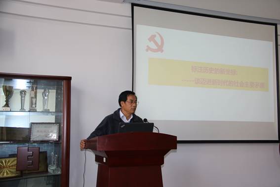田亮教授宣讲的主题是标注历史的新坐标——谈迈进新时代的社会主要矛盾。田教授从中国特色社会主义进入新时代社会主要矛盾的论断、社会主要矛盾发生变化的依据、科学理解社会主义主要矛盾转变的历史转换等三个方面进行阐述。田亮教授将新中国成立以来中国发生的重大变革和发展向大家进行了解读,他强调改革开放以来中国在政治、经济、文化中都取得了很大的成就,但是还需要更大的进步。他指出,在2020年中国将实现全面脱贫,脱贫后未来发展的道路将更加任重道远。田教授重点强调,中国共产党是充满活力的党,大家一定要坚信党的领导,在中国共产党的带领下全面实现中国梦。宣讲会上,田亮教授运用翔实的数据、经典的案例、生动的语言,全面系统、深入浅出地对党的十九大提出的重要思想、重要观点、重大论断、重大举措,作了全面系统、重点突出的解读。