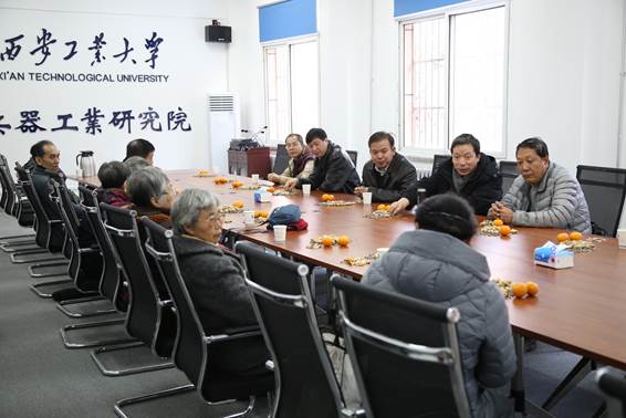 获批国家自然科学基金7项,占全校38%,获批国防类项目5项,获批专利10项,发表SCI论文59篇,科研经费突破一千万元,总计1665.3万元,其中纵向经费1396.49万元,横向经费268.81万元。随后,院长坚增运就本科教学工作审核评估、陕西省一流学科建设、金属材料工程专业认证等工作始末向大家做了详细介绍与说明。其次,党委副书记张治宏向大家汇报了学生工作情况。然后,学院领导就退休教师的生活起居、身体健康等方面进行了亲切攀谈,退休教师畅所语言,现场气氛活跃而温馨,退休教师对学校、学院的发展给予充分肯定与高度赞扬,同时也为学院发展提供了诸多好的意见与建议。最后,学院为退休教师发放了春节慰问品。