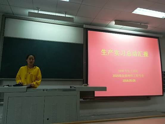 在教2-212召开2015级金属材料工程专业校外生产实习报告会。报告会由夏峰老师主持,2015级金属材料工程专业全体学生参加了此次报告会进行了汇报。