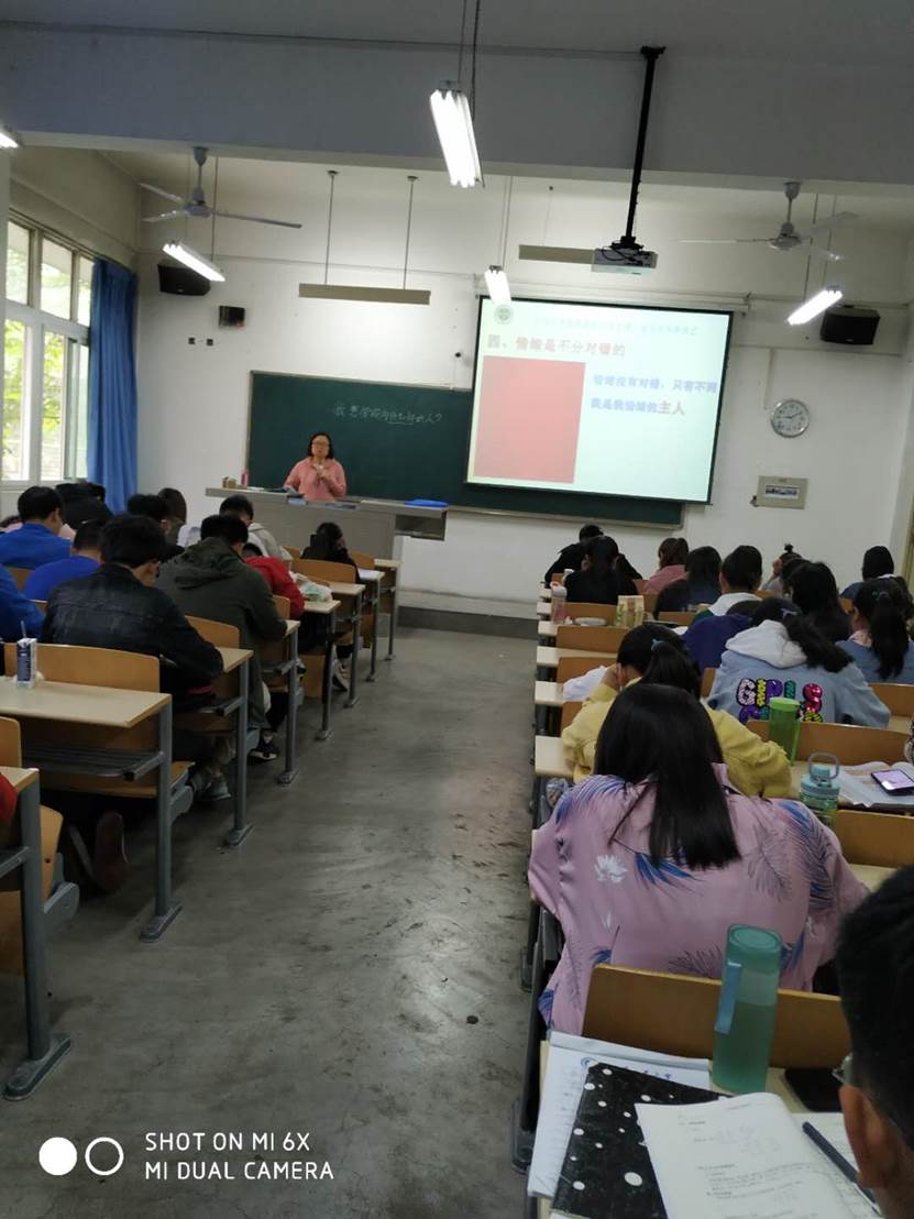 2019年4月25日在教三心育员王亚茹老师为18级同学进行“如何控制情绪,调整自我”主题讲座。