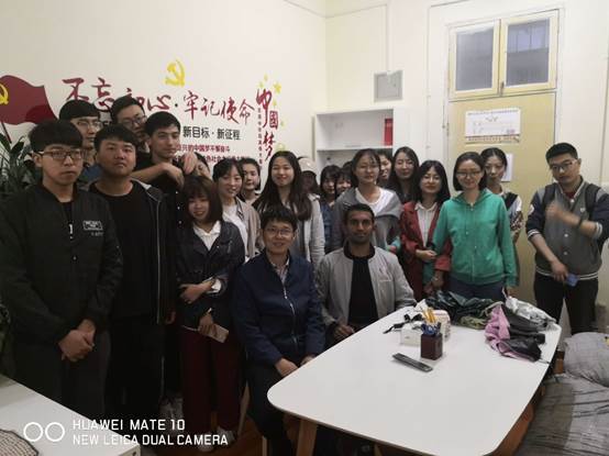 会议伊始,aive首先从人文历史、自然风光、特色美食等方面向在场同学全方位介绍了巴基斯坦的相关情况,使同学们领略到了不同的风土人情和人文特色。然后,他分享了在中国留学期间有趣的学习与生活经历,从一开始的语言文化、生活习惯等等的不适应到慢慢的习惯甚至爱上了这里,表达了对中国悠久历史与中国人民热情友好的喜爱之情。随后,他与同学们热情交流。对大家的提问耐心解答,语言诙谐幽默。最后,他针对大家的英语口语问题提出了诸多学习和提升建议,鼓励大家勇敢的表达自我。