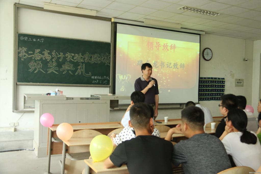 党委书记路金龙发表讲话,针对高分子的整个发展历程以及后期专业的前景寄予期望,希望在今后的各项竞赛中能涌现出更多优秀学生,作为新时代的大学生,要提升专业能力,聚焦实验能力、创新能力和就业能力,提升材料类人才培养质量;另一层面也希望教师要不断更新教学理念,促进教学方法、实验教学内容,引导更多的学生能够提升个人的综合素质。郭永春副院长对历经三天认真比赛的获奖学生表示祝贺,同时从多个层面强调实践能力的重要性,为学生在双实培养过程中提供更多交流机会,也为全国大赛的主办权提供一定的支撑。