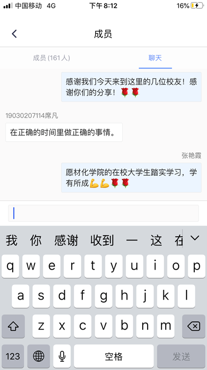 最后,临近会议结束,主持人乔娜再次感谢四位优秀校友的精彩分享,并希望与会学生能向优秀的校友学习,明确目标、努力拼搏、筑梦起航。