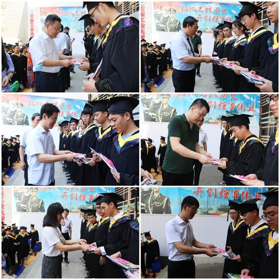 最后,学院党政领导和教师代表为毕业生代表赠送了由学院精心制作的2020届毕业生纪念册。纪念册里记录了毕业生寄语、老师寄语、学弟学妹寄语、大学生活照、班级活动合影等。每一本毕业纪念册不仅记录了毕业生们在大学期间的成长点滴,更包含了学院对2020届毕业生殷切的希望与深深的祝福。