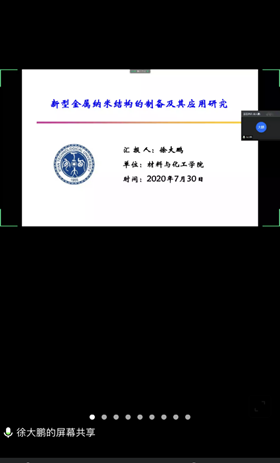 徐大鹏副教授由浅入深的向对新型金属纳米的研究背景、现状、发展趋势及需解决的科学问题进行了详细的介绍。