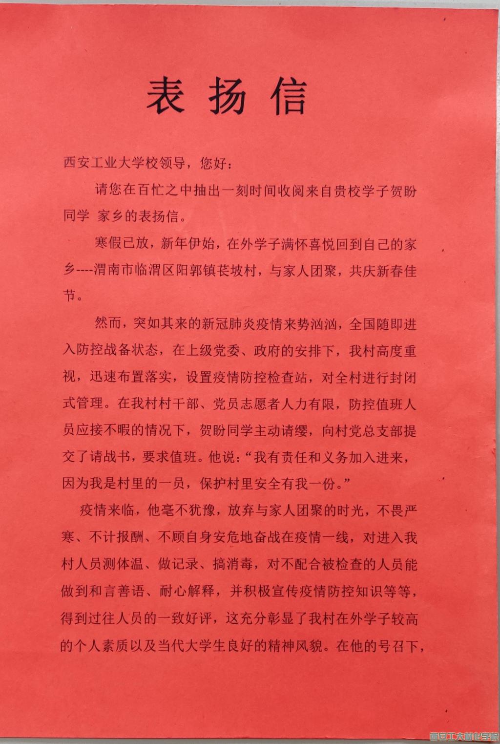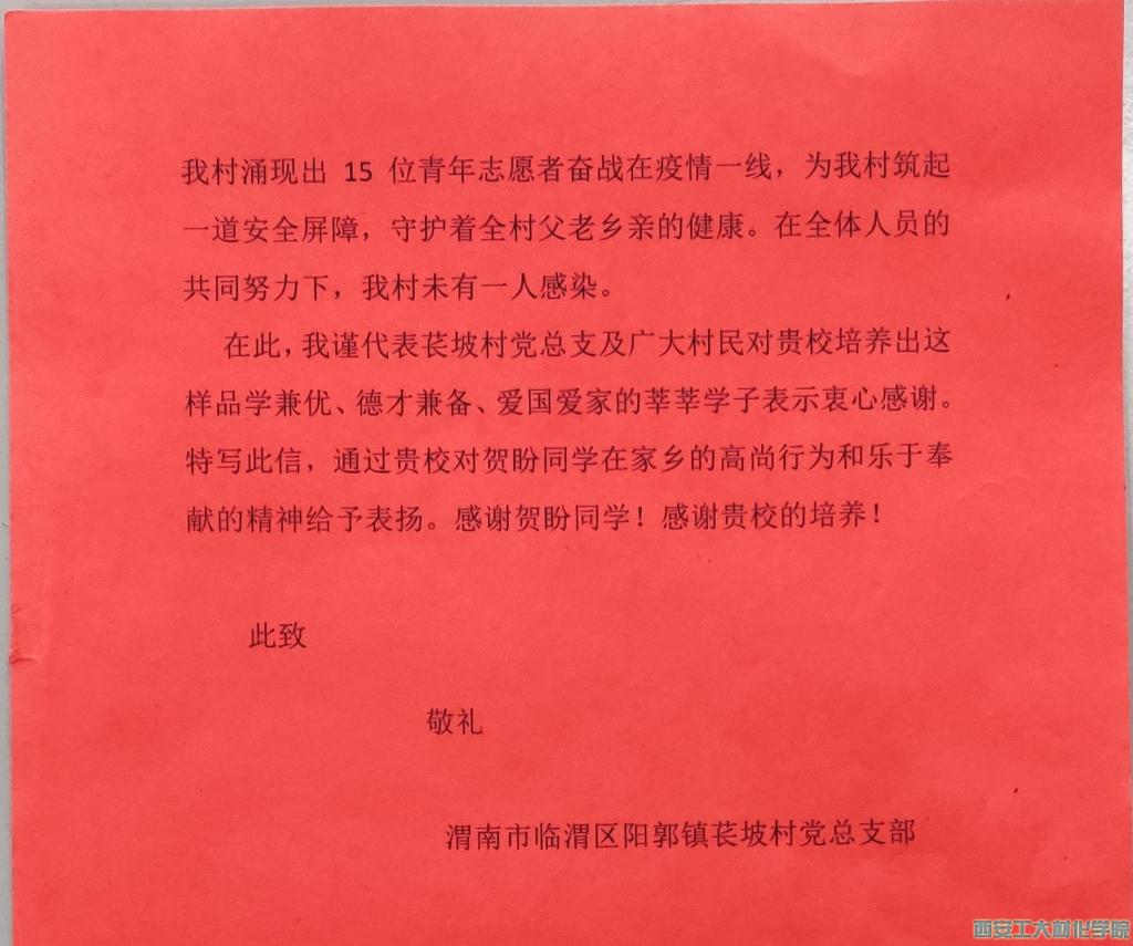 收到了来自渭南市临渭区阳郭镇医坡村的疫情表扬信,信中对污污漫画