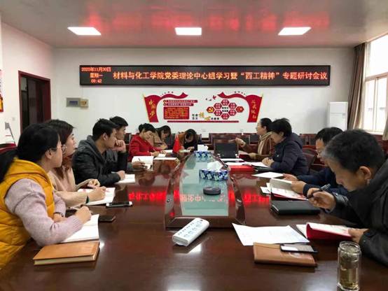 本次中心组会议在政治理论学习阶段主要学习了《中国共产党中央委员会工作条例》、《深化新时代教育评价改革总体方案》、“四史课堂”和《中共党史简明读本》中关于“中国共产党的成立和工人运动的勃兴”部分。会上呼书记强调在不断加强和学习党的创新理论的同时,要并同将学习“四史”结合起来,“四史”内容各有侧重,是见证国家在中国共产党的带领下不断完善社会主义体制、从无到有,从理论到实践一步步走向繁荣的重大印记,并要求全体党支部在理论集中学习中将“四史”学习作为侧重点,使广大的党员同志深刻认识红色政权来之不易,做到不忘历史、不忘初心、知史爱党。会议在理论学习中由院党委副书记张艳霞重点领学了11月17日《中国教育报》刊登发表的校党委书记刘卫国署名文章《忠诚进取铸辉煌 精工博艺育英才》,文章以“西工精神”为主线,由筚路蓝缕的建校初始讲起,西工人发扬西迁精神,矢志报国,将“西工精神”薪火相传,展现出一批又一批高精尖人才输送至祖国的各行各业,并展望未来,“西工精神”将为学校的追赶超越奠定坚实的基础。张书记结合个人工作经历在学习中谈到:作为土生土长的西工人见证了学校从无到有,从旧到新的基础建设,见证了各个校区从通路到建房西工人所孕育发扬的“西工精神”,作为“材化人”要秉承发扬“西工精神”所具有的活力动力,作为教师、辅导员、党支部书记、团学工作人员更要传承好这种拼搏精神,向广大师生传播“西工精神”,将这种精神扎实扎牢在一线工作广大师生。