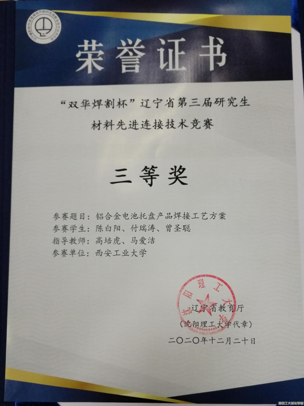 高培虎、马爱洁老师指导,研究生陈白阳、付瑞涛、曾圣聪共同完成的作品《铝合金电池托盘产品焊接工艺方案》荣获三等奖。污污漫画