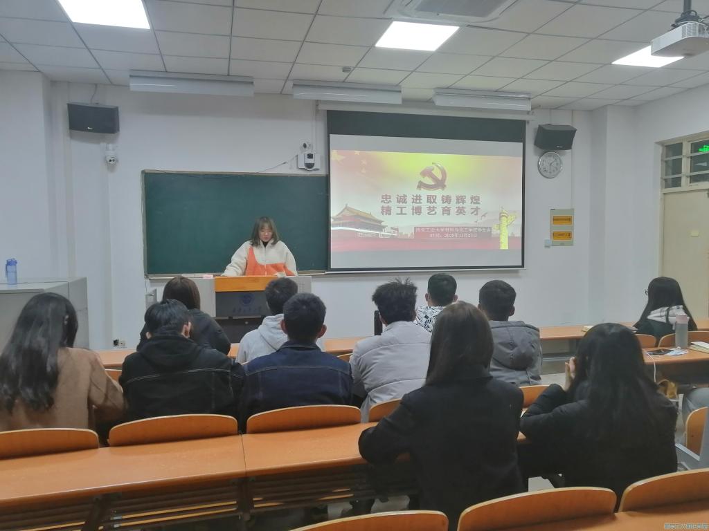 团学组织于2020年11月27日召开“忠诚进取铸辉煌,精工博艺育英才”主题理论学习会,学院团委书记段强、副书记乔娜出席本次会议,全体团学干部参加本次会议。