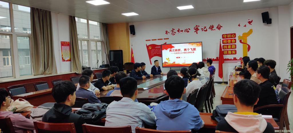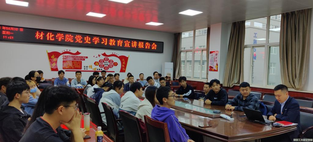 为全面贯彻习近平总书记在党史学习教育动员大会上的讲话精神,深入推进党史学习教育,4月196时化学院于工3-410会议室举办了以两次转折,两个飞跃”为主题的党史学习教育宣讲报告会报告会由学生处学工干部韩霄主讲,2019级学生代表参加。