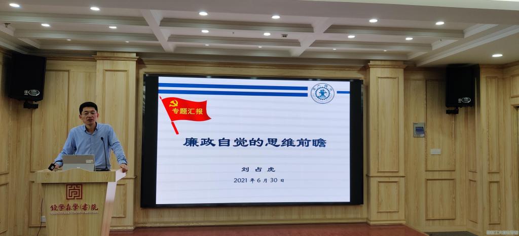 党委书记呼晓青,纪委书记、党委副书记张艳霞,党委委员,师生党支部书记和学生党员代表参加,报告会由西安交通大学马克思主义学院副教授刘占虎主讲,会议由张艳霞主持。