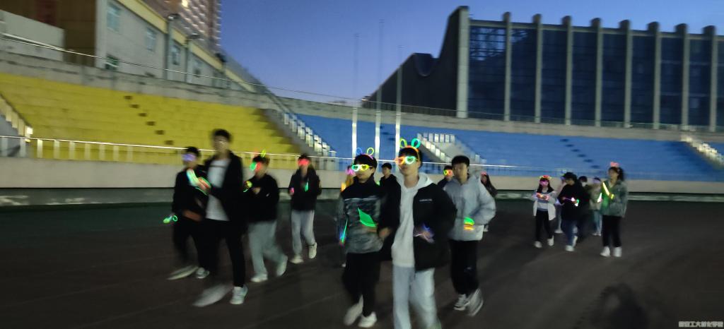 活动开始,参与者纷纷选择道具,亲自使用荧光棒制作眼镜、发卡、手环等配饰,有些同学还别出心裁的制作了棒棒糖、风车、鲜花等。随着主持人一声令下,夜跑开始,参与者三五成群的跑动起来。大家享受着荧光夜跑带来的新奇体验。