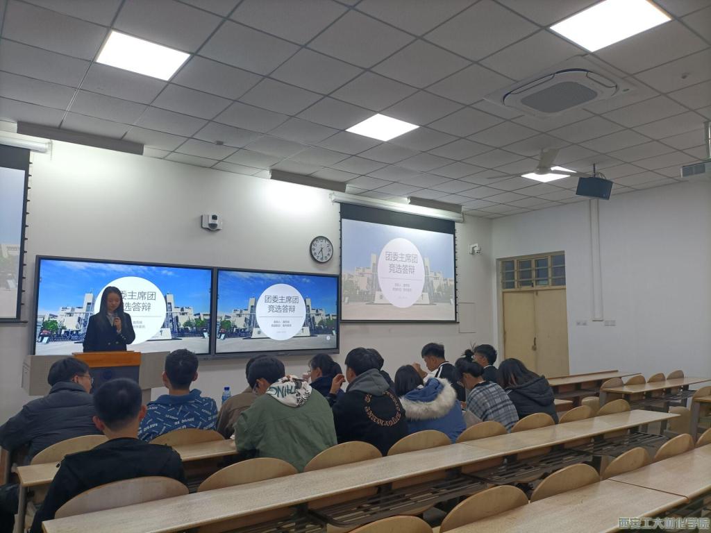 团委于教二-106召开团学干部换届答辩大会。学院团委书记段强、副书记乔娜和全体团学学生干部参会。