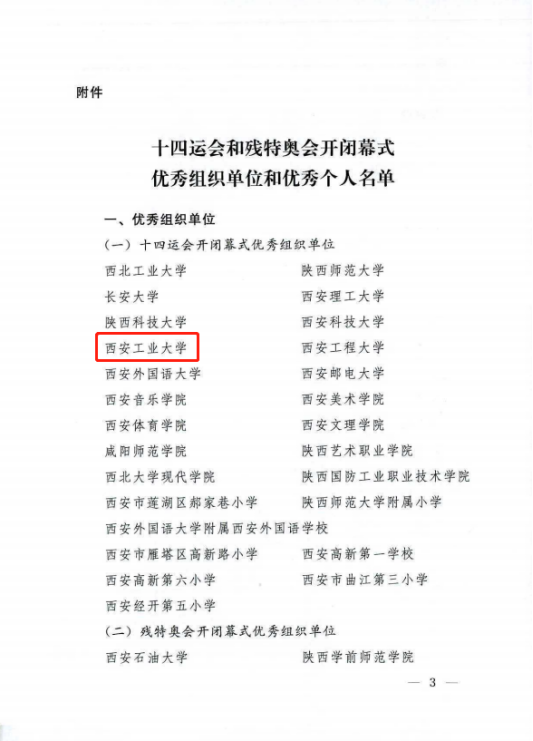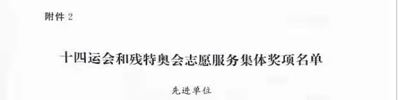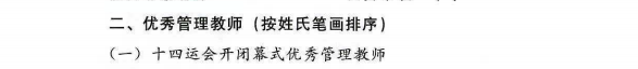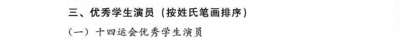 乔娜老师荣获“十四运会开闭幕式优秀管理教师”称号,王少飞等11人荣获“十四运会优秀学生演员”荣誉称号,延涵冰荣获“十四运会和残特奥会优秀志愿者”称号。