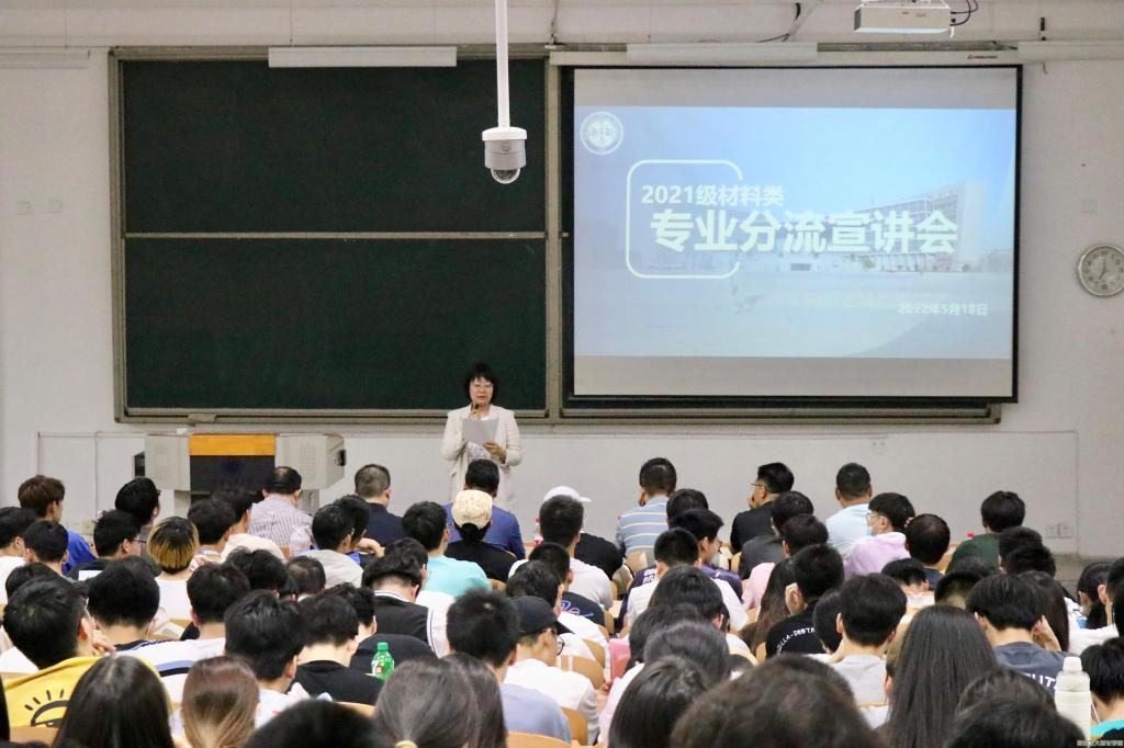 与新生院于2022年5月18日在教1-205顺利召开2021级材料类专业分流宣讲会。材化学院党委副书记陈卫星、副院长金洗郎、金属材料工程教研室副主任高培虎、高分子材料与工程教研室副主任朱生勃、无机非金属材料工程教研室主任靳长清、材料化学教研室主任扈琳、新生院材料类辅导员杜堃参加会议。本次宣讲会由新生院材料类辅导员刘强珺主持,21级材料类所有学生参会。