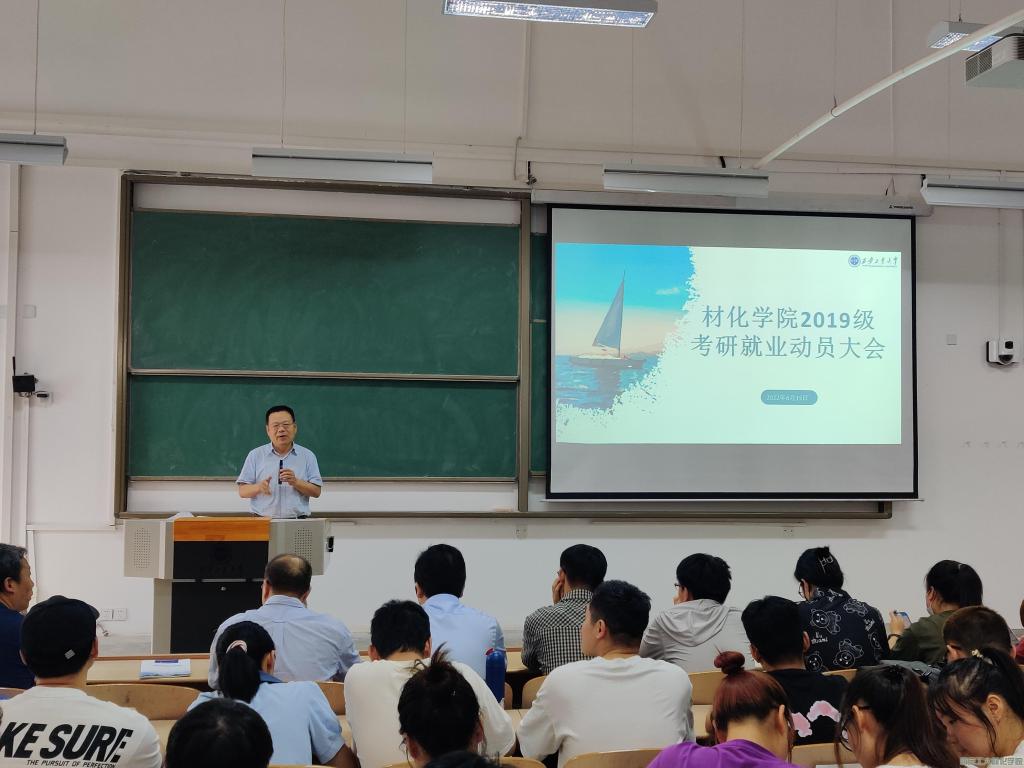 学生坚定考研目标,增强考研信心,做好考研选择与准备,6月15日上午8时,材化学院2019级本科生考研就业动员大会在教3-217举行。学院院长惠增哲、副书记陈卫星、副院长杨忠和金洗郎以及2019级全体学生共同参加会议,大会由2019级学生辅导员乔娜主持。