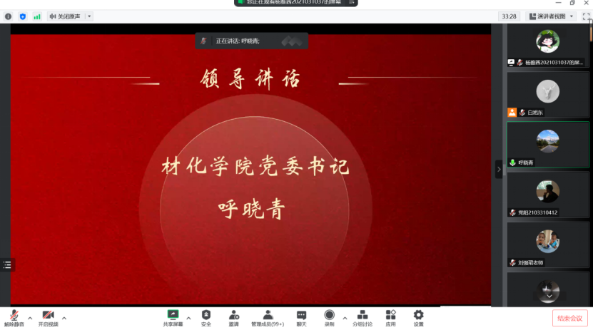 党委书记呼晓青、2021级辅导员刘强珺老师出席本次会议,培训班全体成员参加,会议由学生干部杨雅茜主持。