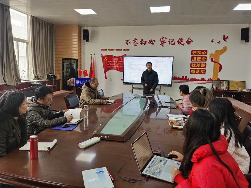 会议第二项由副院长杨忠向各位年轻教师讲清国家自然科学基金的重要性,传授个人申报经验,明确今年学院申报及中标项目指标,并代表学院提出殷切期待。