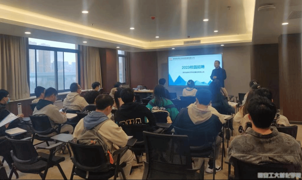 邀请陕西金泰化学科技集团有限公司于创双楼514举办专场招聘会,2023届毕业生辅导员乔娜和30余名毕业生参加了招聘会。