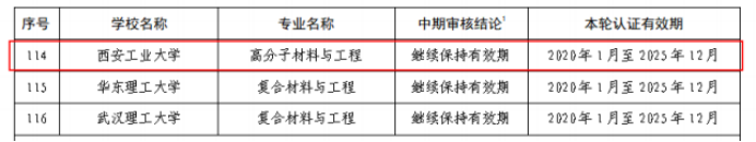 高分子材料与工程专业顺利通过工程教育认证中期考核,继续保持有效期至2025年12月。