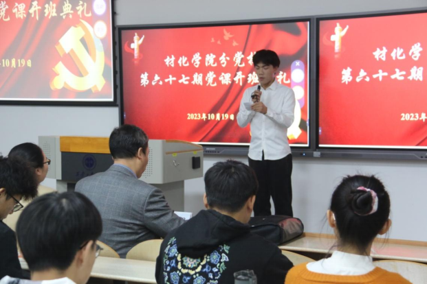 党委于2023年10月19日下午18:30在教2-106举行入第六十七期党积极分子培训班开班仪式暨第一次授课,学院党委副书记陈卫星参加会议。