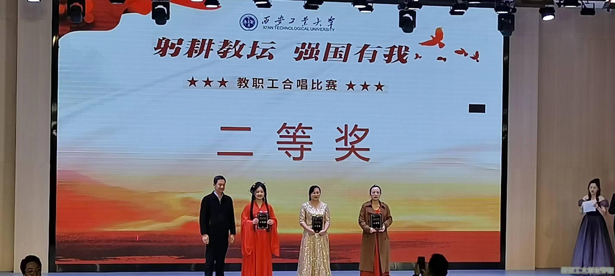 教师合唱团的参赛曲目《唱支山歌给党听+歌唱祖国串烧》以第二名的成绩荣获二等奖。