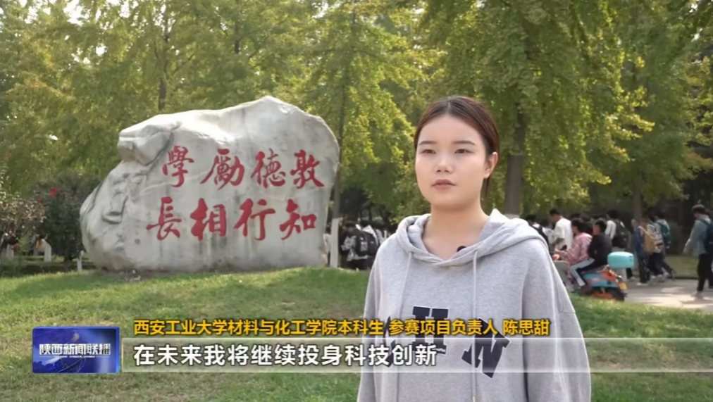 陈思甜在采访中展现了我校大学生积极探索的创新精神和敢闯会创的综合实力。陈思甜表示,我将牢记习近平总书记对新时代青年的谆谆嘱托和殷切期许,继续投身科技创新,用在课堂和实验室学到的知识解决实际问题,在创新实践中增长本领和才干,提升科学素养和创新能力,为实现中华民族的伟大复兴贡献自己的力量。