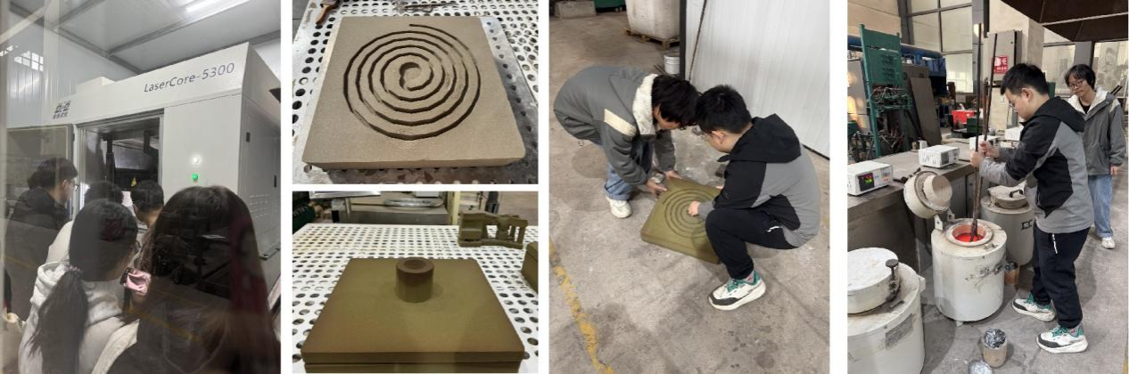实践环节,同学们亲身体验了砂型3D打印的实际操作流程。从SolidWorks软件构建砂型模具三维模型,精心规划切片与路径,到打印参数的设置与调整,再到借助激光3D打印机将砂粒逐层烧结成型与后处理,每一个环节都在教师的悉心指导下有序进行。随后,学生完成铝液浇铸以测试砂型流动性,全程自主操作,犹如一场科技创新的实战演练,有效提升了他们的综合实践与创新能力。