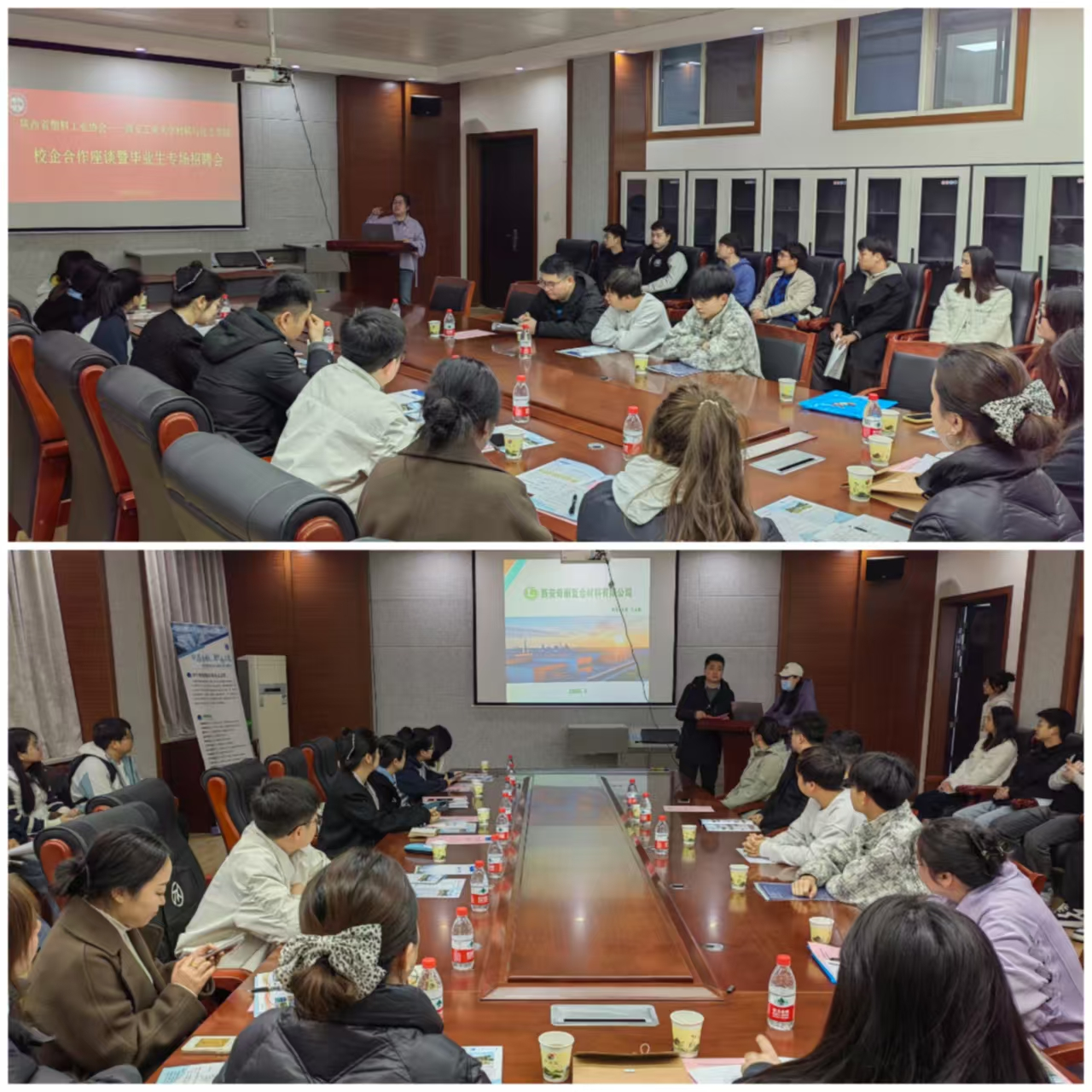 于工4-302举办两场专场招聘会,西安奇丽复合材料有限公司、西安天瑞汽车内饰件有限公司相关负责人做现场宣讲,学院毕业班辅导员段强和30余名毕业生参会。