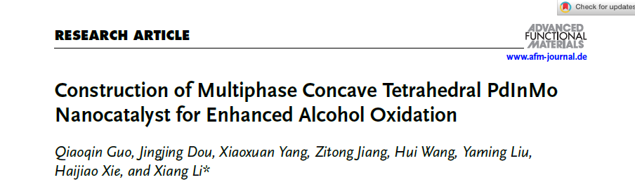 教师李祥博士和郭巧琴教授合作的科研成果在国际TOP期刊《Advanced Functional Materials》上发表(IF=18.5),论文题目为《Construction of Multiphase Concave Tetrahedral PdInMo Nanocatalyst for Enhanced Alcohol Oxidation》,污污漫画