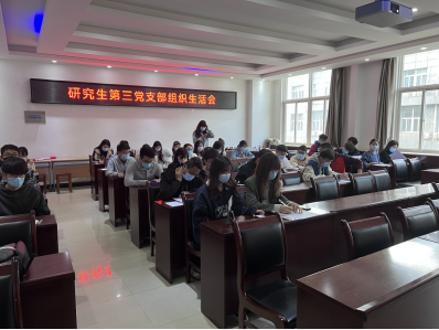 研究生第三党支部于工3-404召开党员大会,开展组织生活和民主评议党员工作。受疫情影响,此次会议分为线上线下两个模式,其中线下到会46人,线上到会6人。会议由支部书记王书丛老师主持召开,学院党员委员刘增超老师线上出席本次会议。