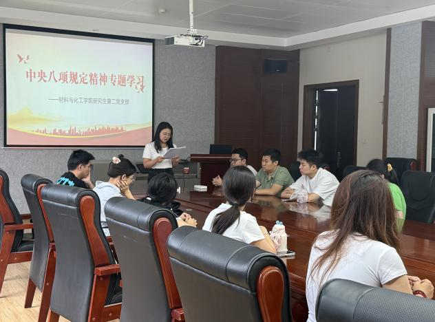 研究生第二党支部组织开展专题学习会。会议由支部书记张启妍主持,通过政策解读与实践研讨相结合的方式,带领全体党员系统学习中央八项规定精神的核心要义与实践要求。