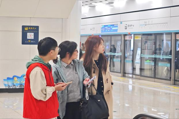 演唱会观众返程高峰时段,各岗位志愿者默契配合、高效联动,始终以饱满的热情、耐心的态度提供服务。红色的志愿马甲在人流中格外醒目,成为地铁站内一道靓丽的“青春风景线”。