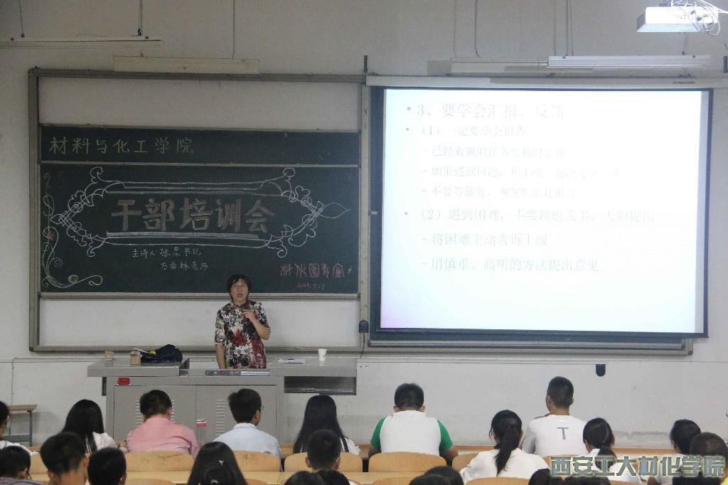 党委书记张忠老师上台发言。书记深刻讲解了学生干部的工作目标、本质、组织等内容,并着重强调了学生干部的本质工作是学习,要求凡事化繁为简、统筹兼顾。张忠书记主要围绕学生干部,强调如何处理好角色间的冲突,包括上级对下级、同级之间、与党支部等的关系。最后,张老师提出了对学生干部的一些要求及殷切期望。同时,会议在一片热烈的掌声中圆满结束。