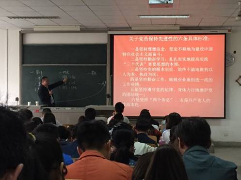 本次党课培训,梁老师主要从以下几个方面讲述:1.党课授课安排;2.入党的必要条件、充分条件及具体条件;3.党员保持先进性的六条具体条件;4.大学生如何做一名合格共产党员的要求。梁老师强调:“作为当代大学生,要努力学习,勇于实践,认真贯彻落实当代社会主义核心价值观,拥护党的领导,学习贯彻习近平总书记系列重要讲话精神,争取做一名优秀的大学生。”最后,伴随着一阵阵热烈的掌声本次授课圆满结束。
