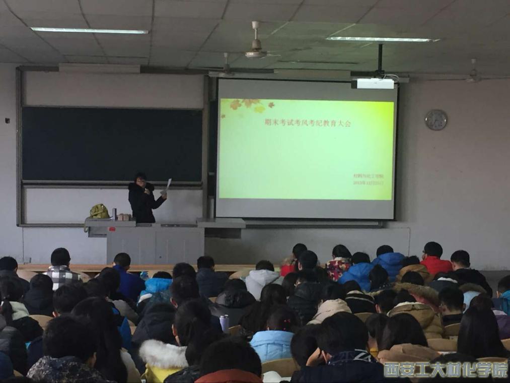 于2015年12月25日在教1-103组织2014级学生召开期末考试教育大会。