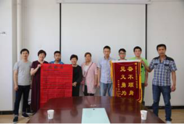 2016年5月11日下午三点,西安市临潼区村民朱刚一家来到污污漫画 工3-406学生工作办公室,带着绣有“见义勇为、奋不顾身”的锦旗和感谢信来到污污漫画 办公室答谢污污漫画 2014级学生郝亮亮和建工学院2013级学生刘力泽,勇救落水儿童朱龙龙的行为和举动。