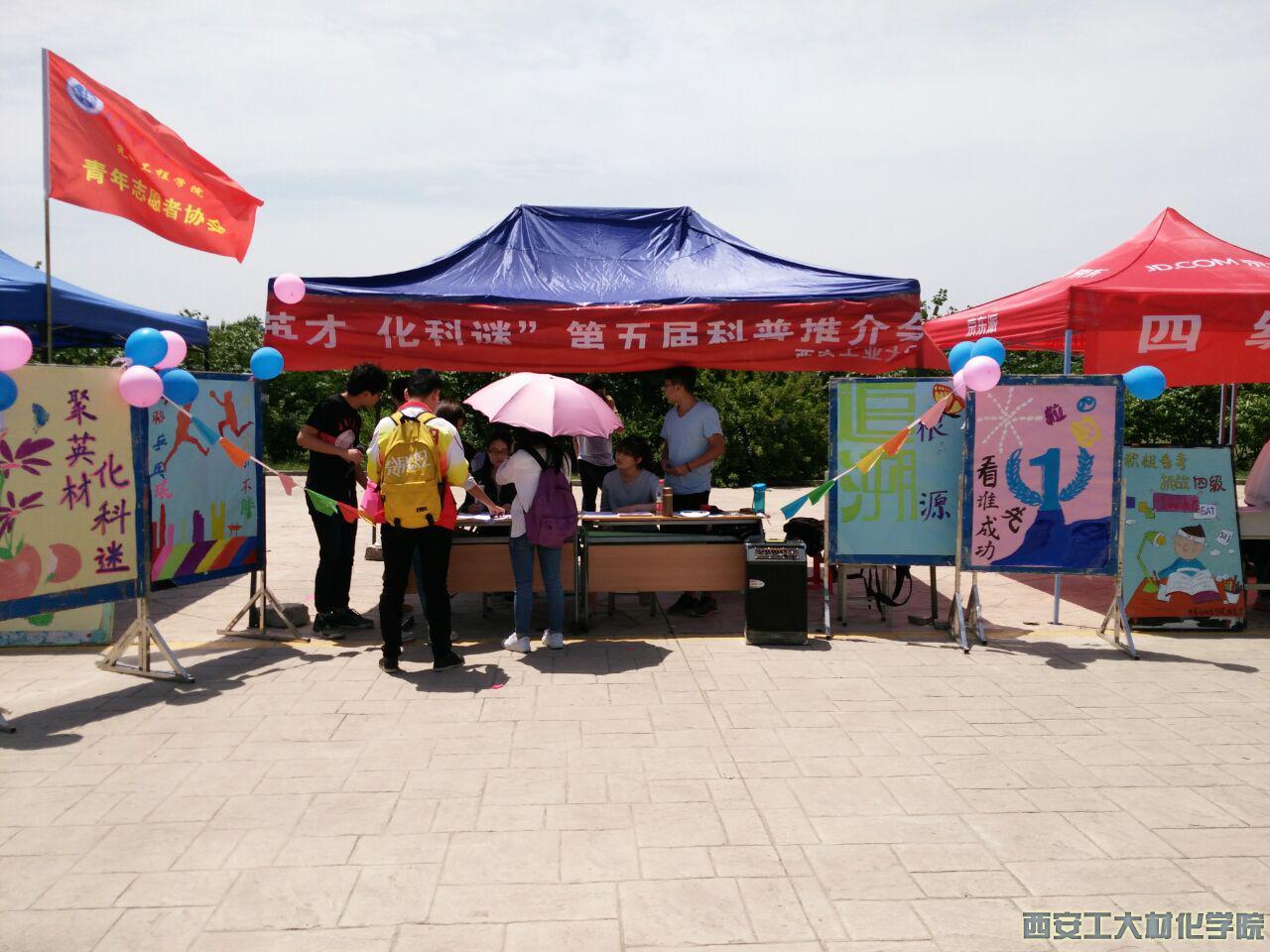 学生会在经纬广场面向全校同学举办“聚英才,化科谜”第五届科普推介会活动。