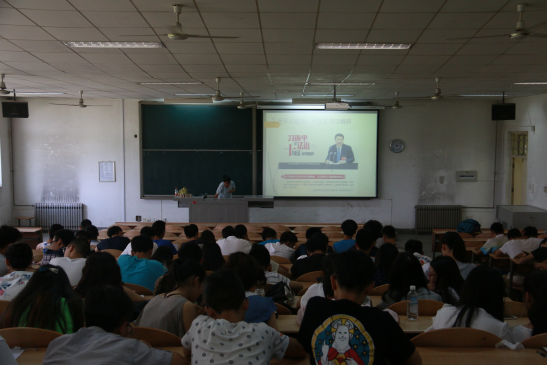 2014级辅导员张瑞红老师于教一101教室召开暑假安全教育大会,2014级学生参加此次大会。