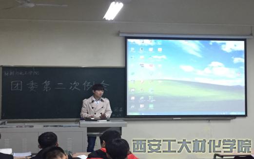 首先,由张朋辉点名确认人员到齐后,干事们依次开始了自己的幻灯片展示。经过第一次展示后的两个星期,干事们修改完善了自己的幻灯片。此次展示,干事们的幻灯片内容更加丰富、形式更加多样。有人介绍自己的偶像,有人介绍自己的兴趣爱好,有人介绍自己的家乡。然后,由各部长点评干事们的幻灯片,并对干事们提出表扬。最后,由张朋辉安排团委近期的工作任务,各位部长将任务具体化。至此,本次会议圆满结束。