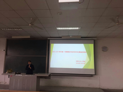 在教1-103召开2014级期末考试考前教育大会,会议由辅导员张瑞红主持,2014级全体学生参加了此次大会。