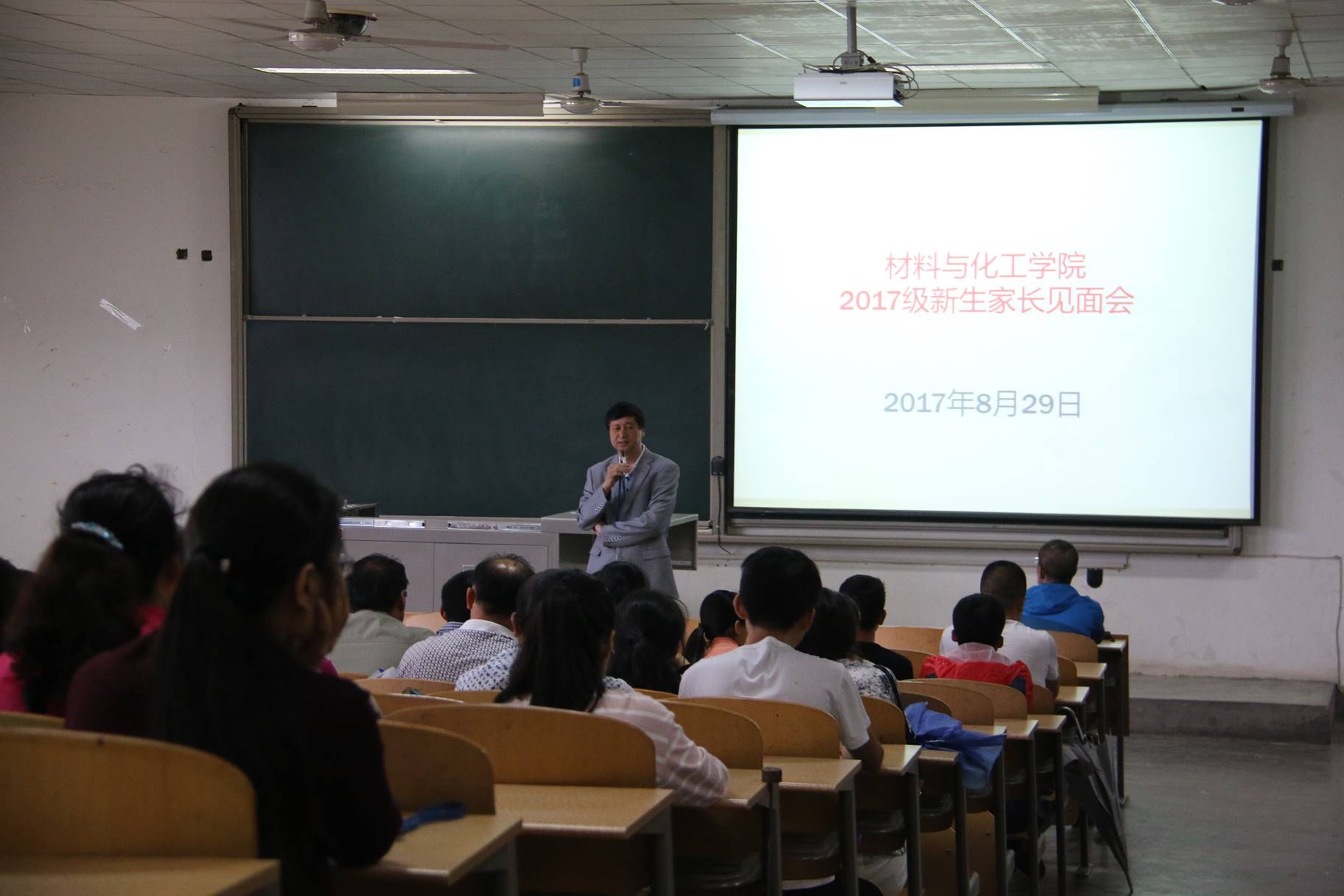 、本科教育情况及师资力量等进行了详细介绍。会议开始,由学院党委副书记张治宏老师主持,邀请学院党委书记路金龙老师对学院整体情况、各个专业发展历史及就至今为止各专业所取得成就进行了概述。随后由高分子材料与工程专业教授陈卫星老师对学院的科研实力、师资力量、考研等教学基础情况进行详细介绍。之后由17级辅导员刘强珺老师表达对新生的期望,希望同学们能在尽快适应新环境,投入到新的学习氛围之中。期间,新生及学生家长积极提问,都得到老师们的详细解答。最后由学院党委副书记张治宏老师总结本次会议内容,对新生接下来的军训等工作进行通知安排。