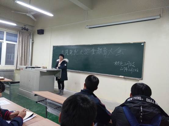 会议伊始,刘老师首先强调考试复习周的安全问题,要求班干部组织好班级学生认真复习,迎接考试;其次,刘老师要求大家元旦出行一定要保证自身安全问题,复习周尽量减少外出,在学校进行学习;并强调放假离校时宿舍要关闭所有电源,不遗留贵重物品,放假在家期间要注意人身安全。