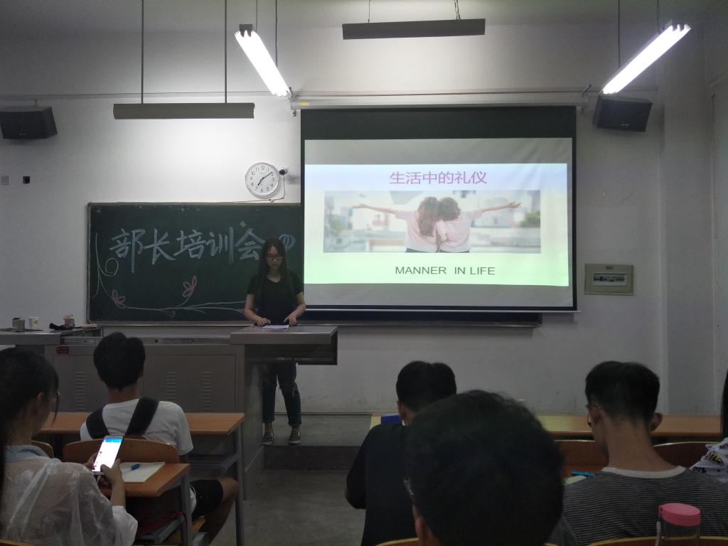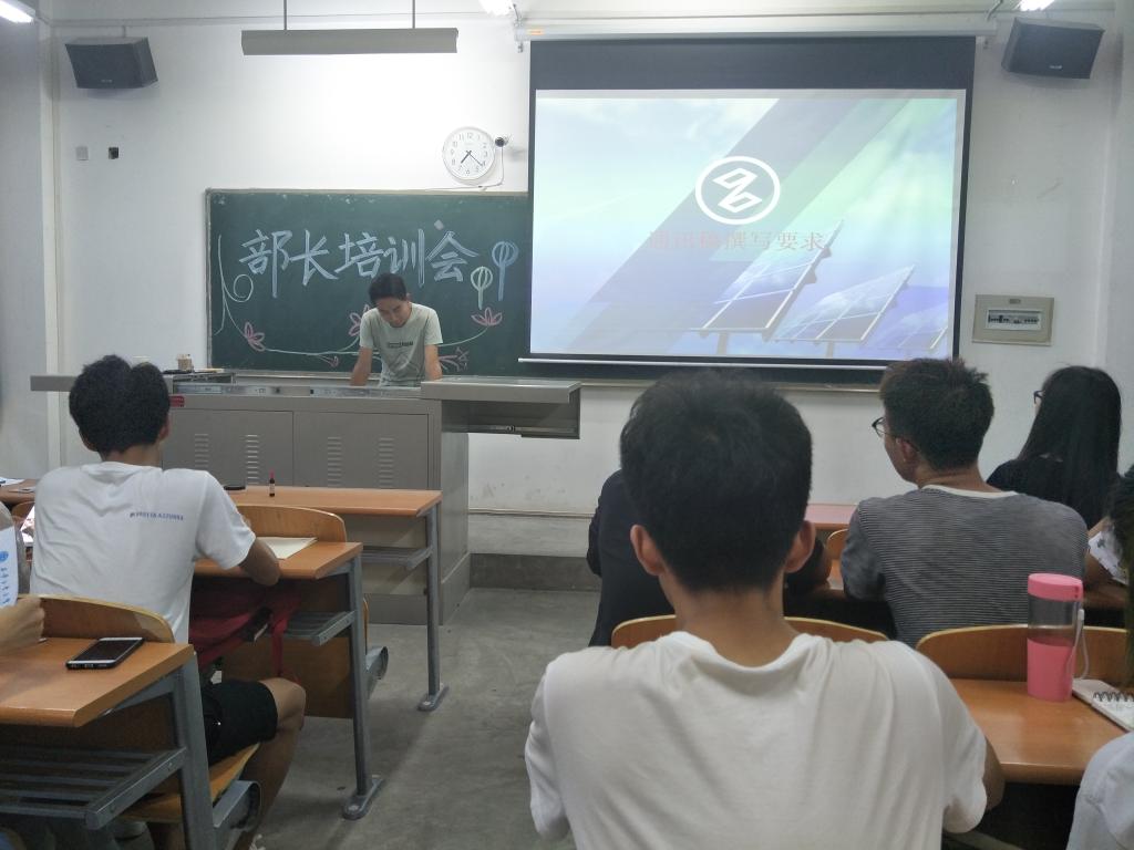 学生会于2018年9月18日六点半在教三-201组织召开团学干部培训会。学生会主席团及全体干部参加此次培训会。