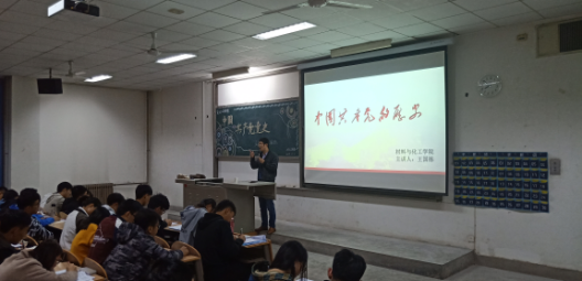 党课伊始,王国栋老师以大唐盛世为切入点,对中国繁荣昌盛的历史做了简要介绍。王老师从清政府时期开始讲解,以时间先后详细的讲解了中国共产党的发展历程,让同学们更清楚的了解党的发展历史。紧接着,王老师联系史实和历史背景发表了对中国共产党建立和发展的看法,使同学们对党的最终目标和现阶段任务,以及当代中国共产党的执政理念和领导核心有了清楚的认识。王老师通过引经据典、旁征博引,使枯燥的历史知识变得生动活泼,充分激发了同学们的学习积极性。